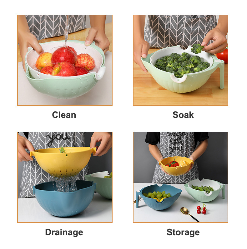 Vegetables Fruits Cleaning Mixing 2-in-1 Plastic Colander Strainer Bowl Sets